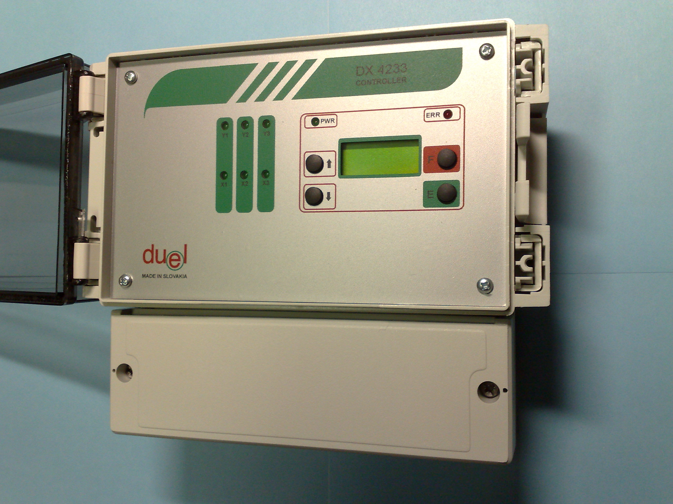Regulátor DX4403 je určený na reguláciu dvojokruhových solárnych systémov, kde zaručuje automatický ohrev teplej vody v jednotlivých okruhoch na požadovanú teplotu. Okrem toho má k dispozícii pomocný reléový výstup, ktorý je možné použiť ako pomocný ohrev, sekundárne čerpadlo, termostat, ovládanie krbového čerpadla alebo cirkulačného čerpadla atď. Automaticky reguluje otáčky čerpadiel. V prípade nedostatku slnečnej energie zapína pomocný alternatívny ohrev. Prístroj meria množstvo dodanej tepelnej energie a uchováva históriu činnosti solárneho systému. Prevádzkové stavy sú zobrazené na podsvietenom LCD displeji s dotykovým ovládaním. Prístroj je možné pripojiť na PC., resp Ethernet prostredníctvom prevodníkov.